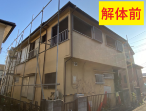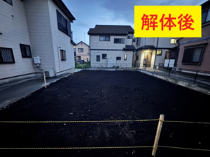 • 工事内容・・・シート養生、躯体解体工事、基礎解体工事、整地、ブロック塀撤去